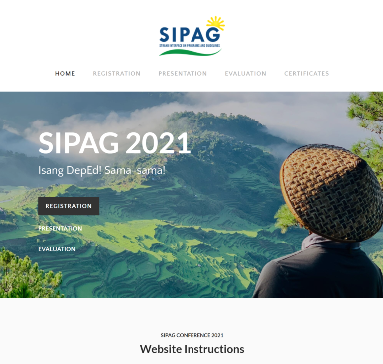 The official website of the Department of Education’s Strands Interface on Programs and Guidelines (SIPAG) event wherein the participants can register for the daily event, view and download the presentations of the speakers, evaluate the event held per day, and download their certificates.